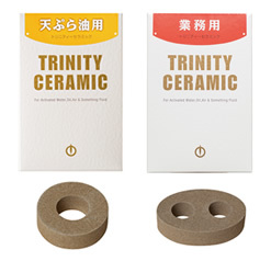 トリニティーセラミック天ぷら油用は食用油の活性化を促す触媒として、フライヤーや天ぷら鍋にそのまま入れて使えます。